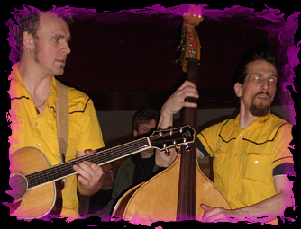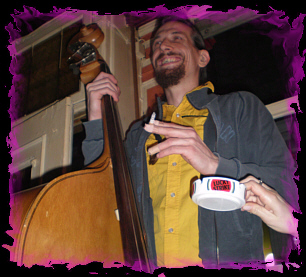 einen kurzen Gastauftritt. Ein nicht ganz alltäglicher Anblick so ein wandelnder Kontrabaß in der nächtlichen Altstadt. Martin schaffte es, sich mit seiner Gitarre durch die Menschentraube bis nach vorne